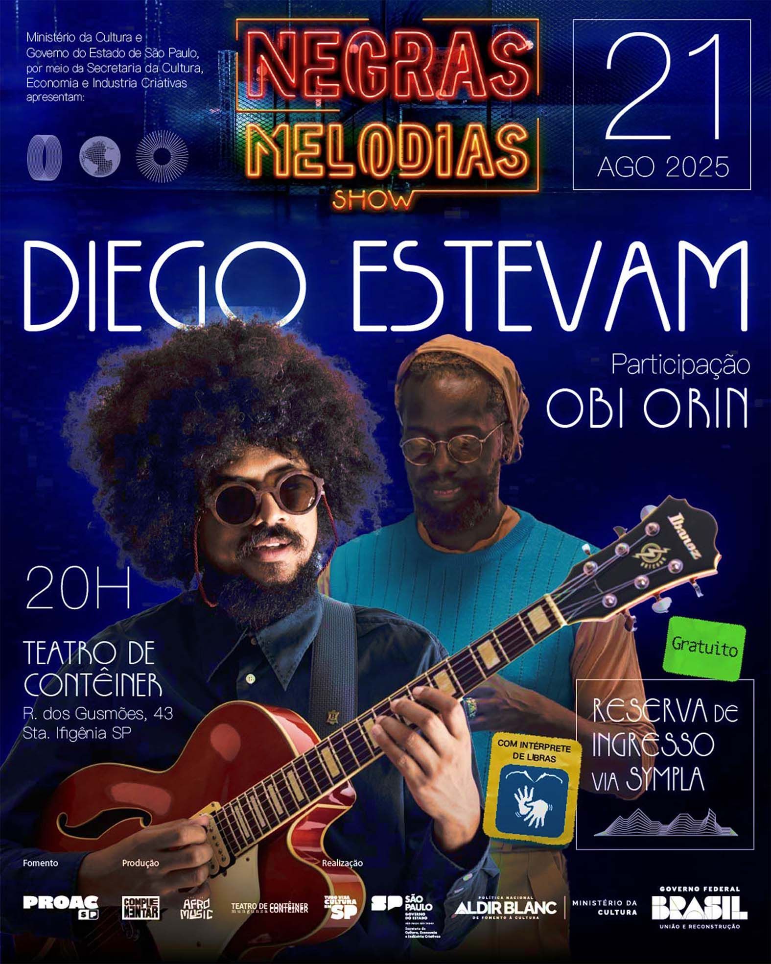 Na apresentação, Diego une canções de seu álbum de estreia com novas composições, transitando entre as texturas do jazz periférico, com arranjos originais que refletem a vitalidade e a beleza da música preta instrumental.