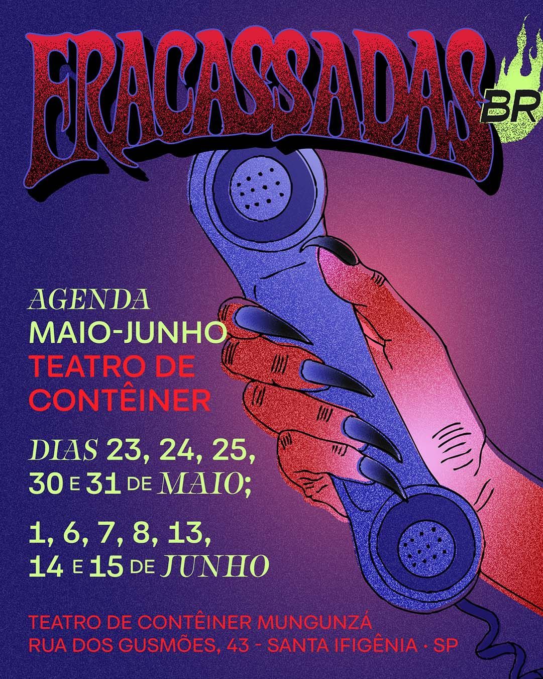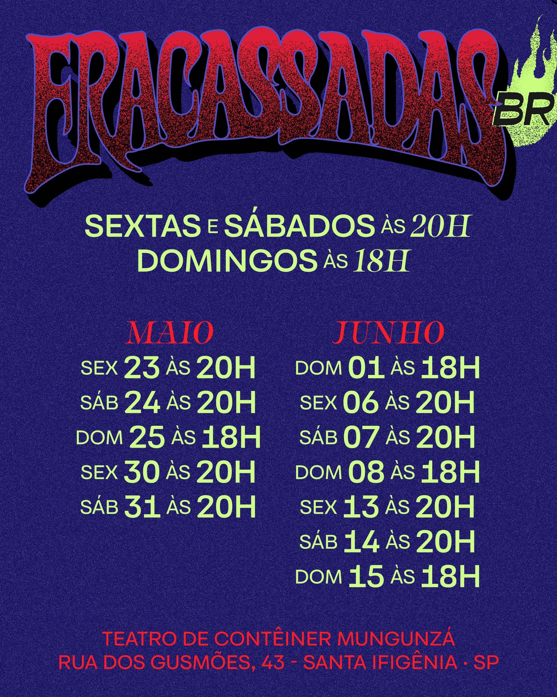 No país onde o sol não sai mais do céu, as habitantes da noite se tornam monstras privadas de casa e família e se refugiam numa boate antiga. Miradas pelos olhos de quem vive no dia, bixas, sapatonas e transviadas veem pelo avesso suas identidades e se reúnem numa luta que é revolta, baile e manifesto. Com referência no funk, na cultura ballroom, nas quebradas e bairros da infância, FRACASSADAS BR exalta os saberes da noite onde as LGBT+ foram esquecidas – ninguém que fracassa sai ileso.