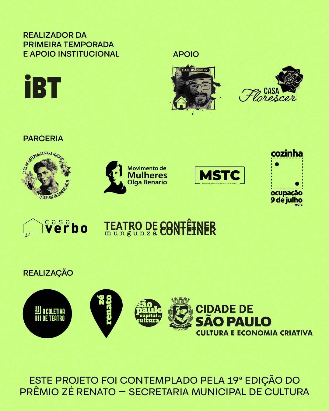 A manutenção do Teatro de Contêiner Mungunzá foi contemplado pela 41ª Edição do Programa Municipal de Fomento ao Teatro para a cidade de São Paulo — Secretaria Municipal de Cultura