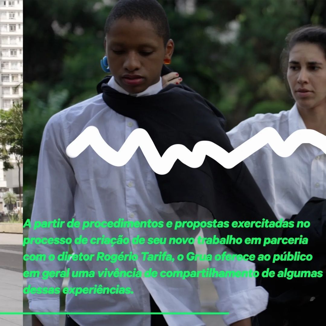 A partir de procedimentos e propostas exercitadas no processo de criação de seu novo trabalho em parceria com o diretor Rogério Tarifa, o GRUA - Gentlemen de RUA oferece ao público em geral uma vivência de compartilhamento de algumas dessas experiências.