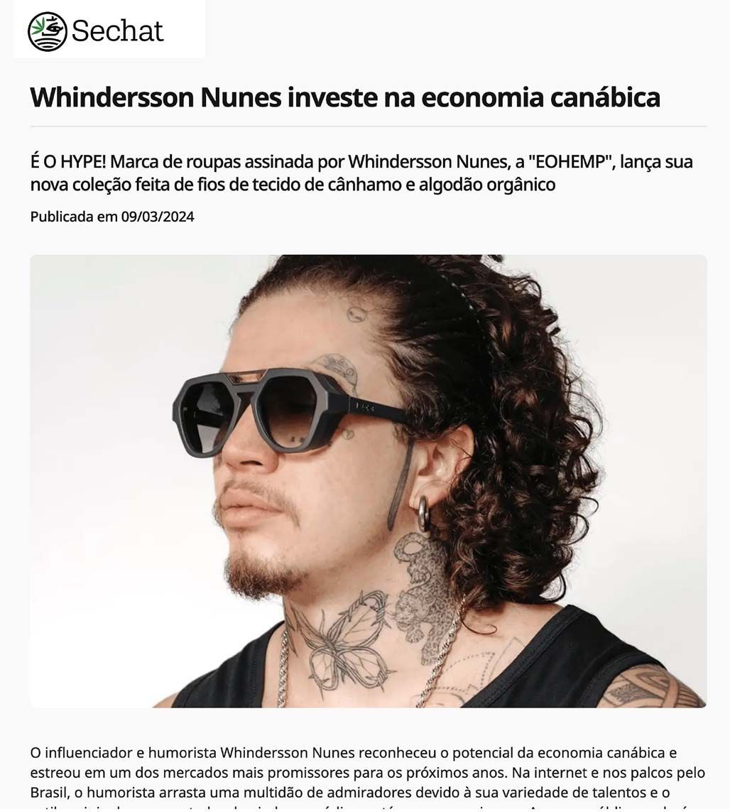 Whindersson Nunes lança sua nova coleção feita de fios de tecido de cânhamo e algodão orgânico, "EOHEMP".